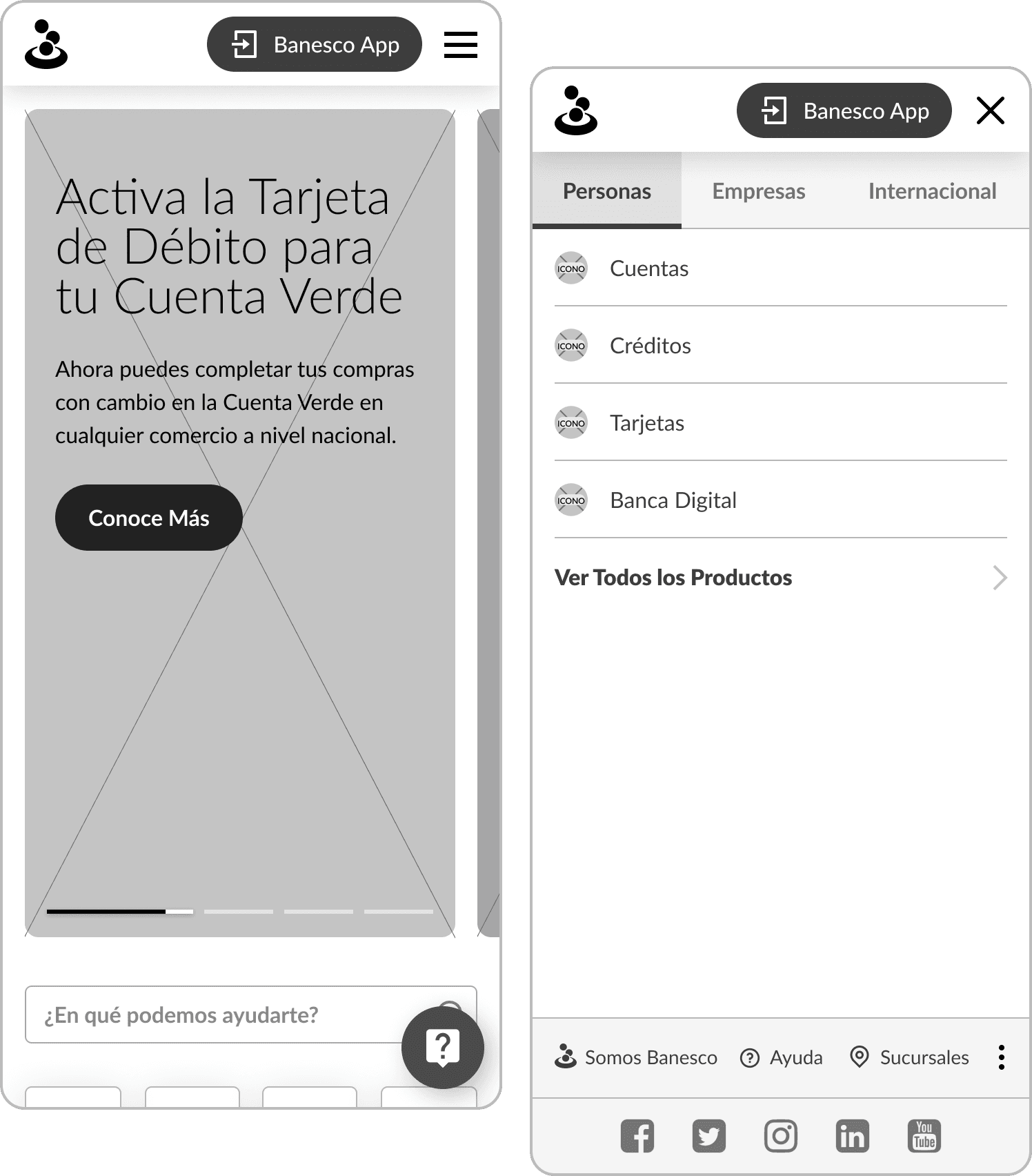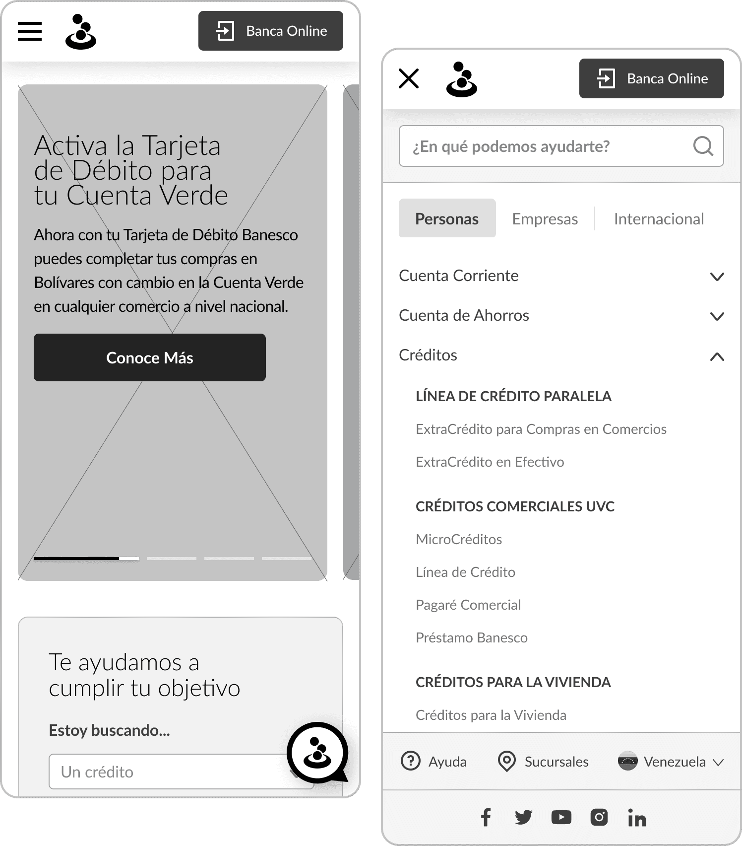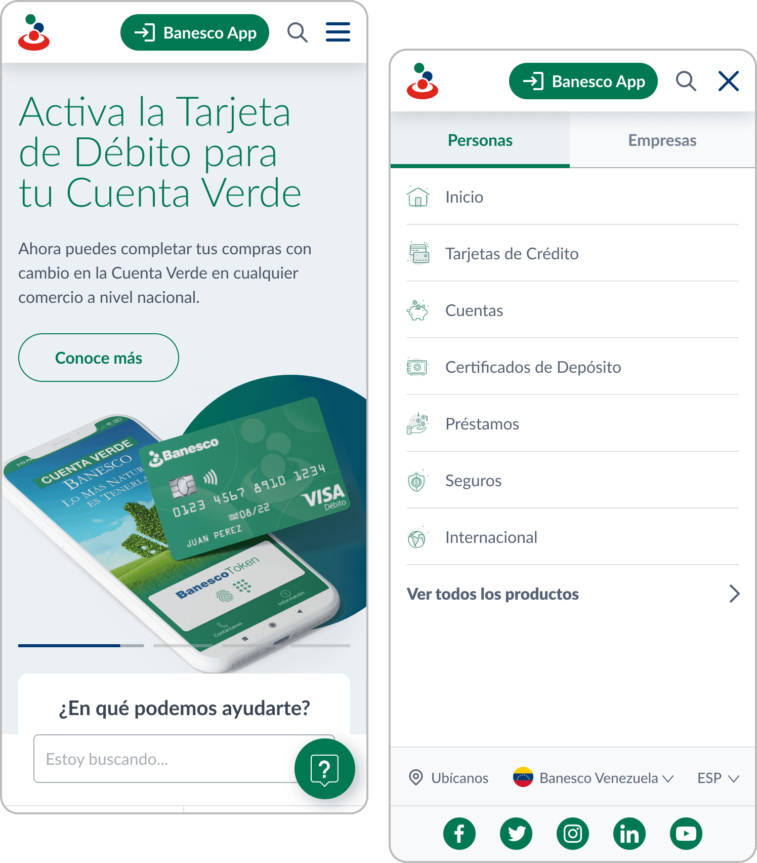 Unificación del branding y websites de todas las sedes de Banesco Internacional: Venezuela, Panamá, Rep. Dominicana y Estados Unidos, creando plantillas adaptables al contenido de cada una de ellas.