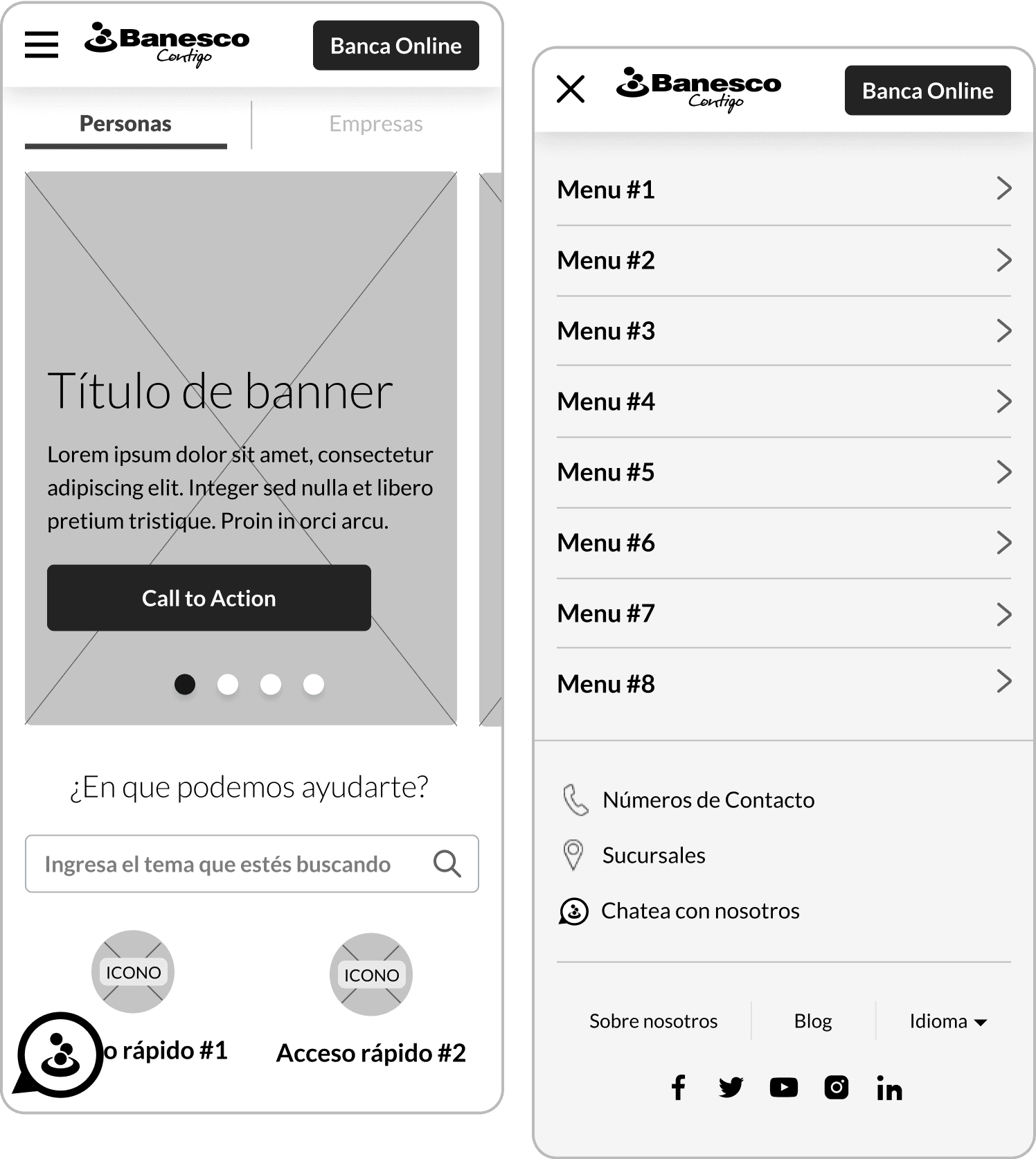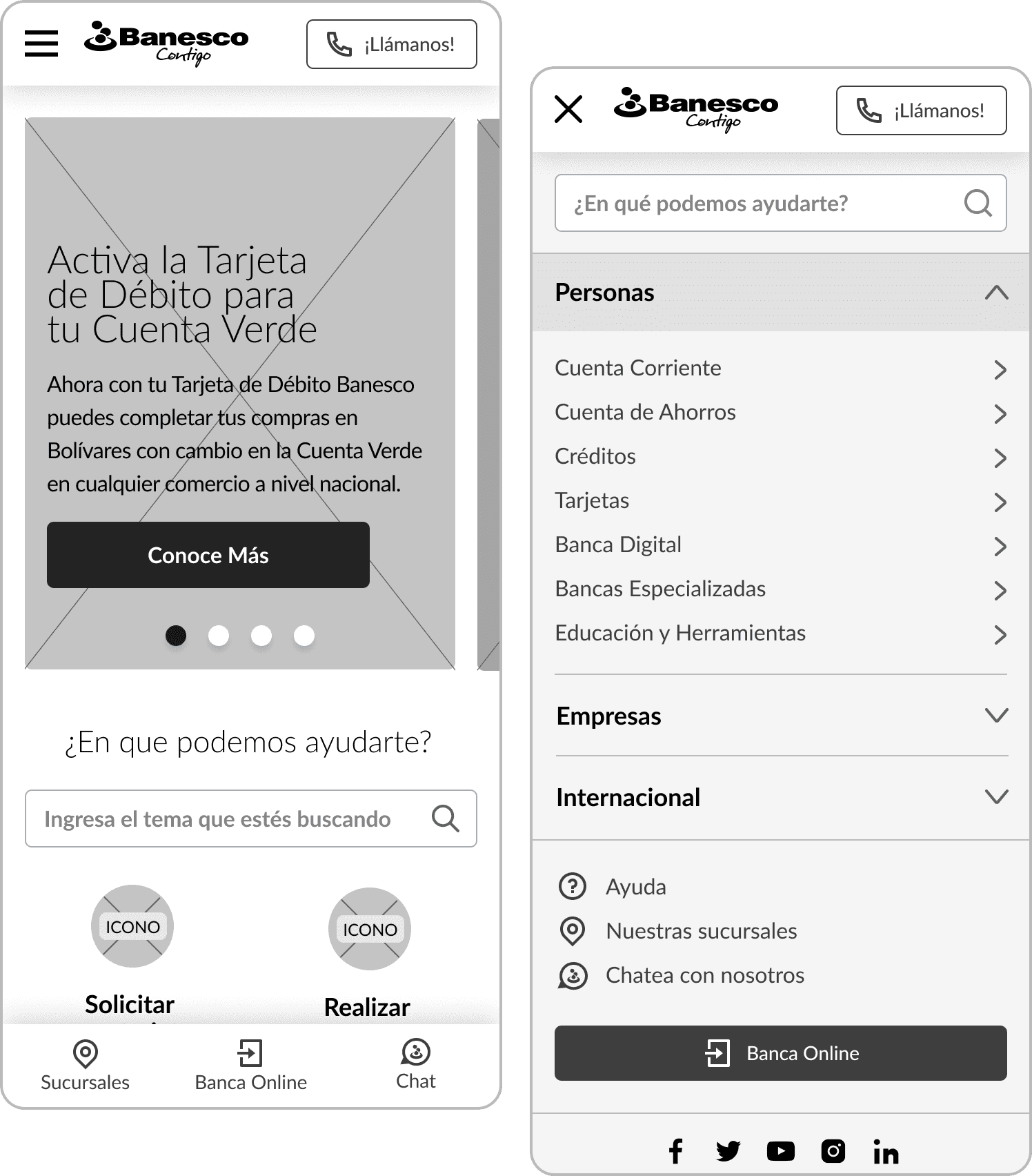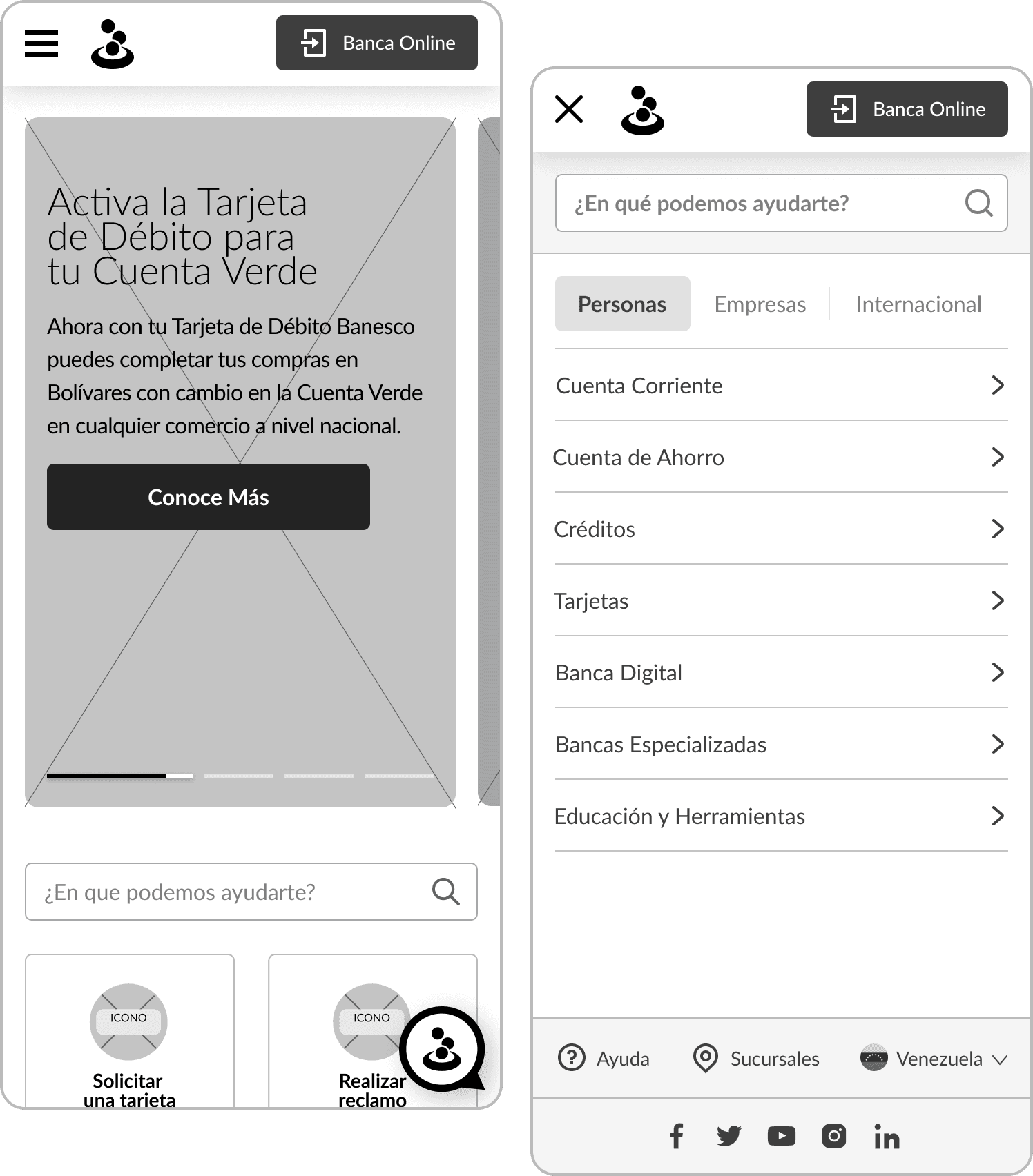 Unificación del branding y websites de todas las sedes de Banesco Internacional: Venezuela, Panamá, Rep. Dominicana y Estados Unidos, creando plantillas adaptables al contenido de cada una de ellas.