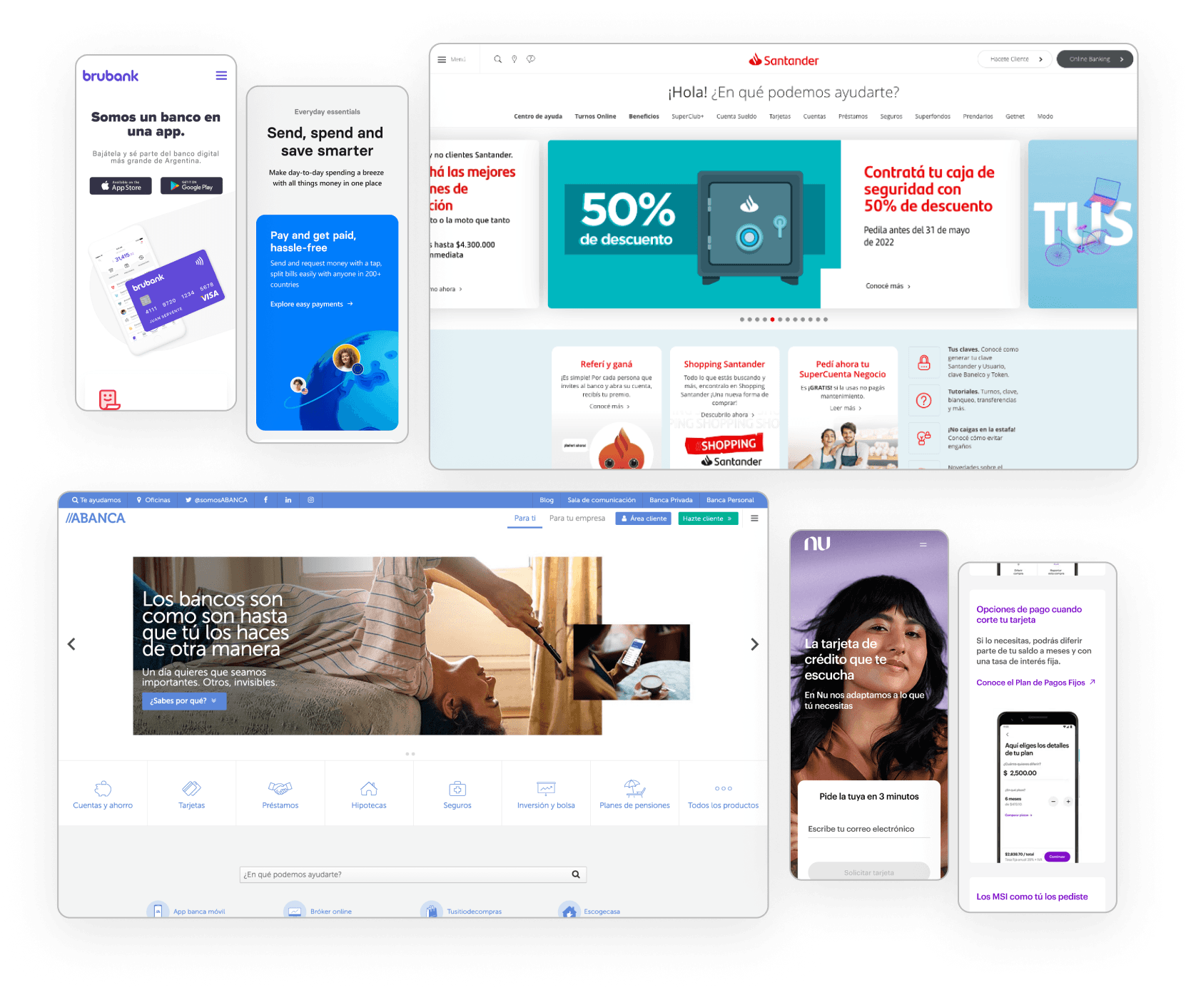 Algunos de los websites de la competencia, tanto de bancos tradicionales como digitales.