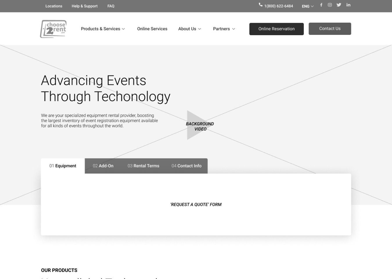 Al tener tiempos muy cortos y no disponer de recursos para el user research, nos enfocamos en un audit exhaustivo y un análisis heurístico del estado previo del website, encontrando las fallas y oportunidades para mejorar la experiencia y usabilidad del sitio. Además, se relevaron distintos sitios de competidores e incluso de socios del cliente, los cuales prestaban servicios relacionados a la organización y equipamiento de eventos.