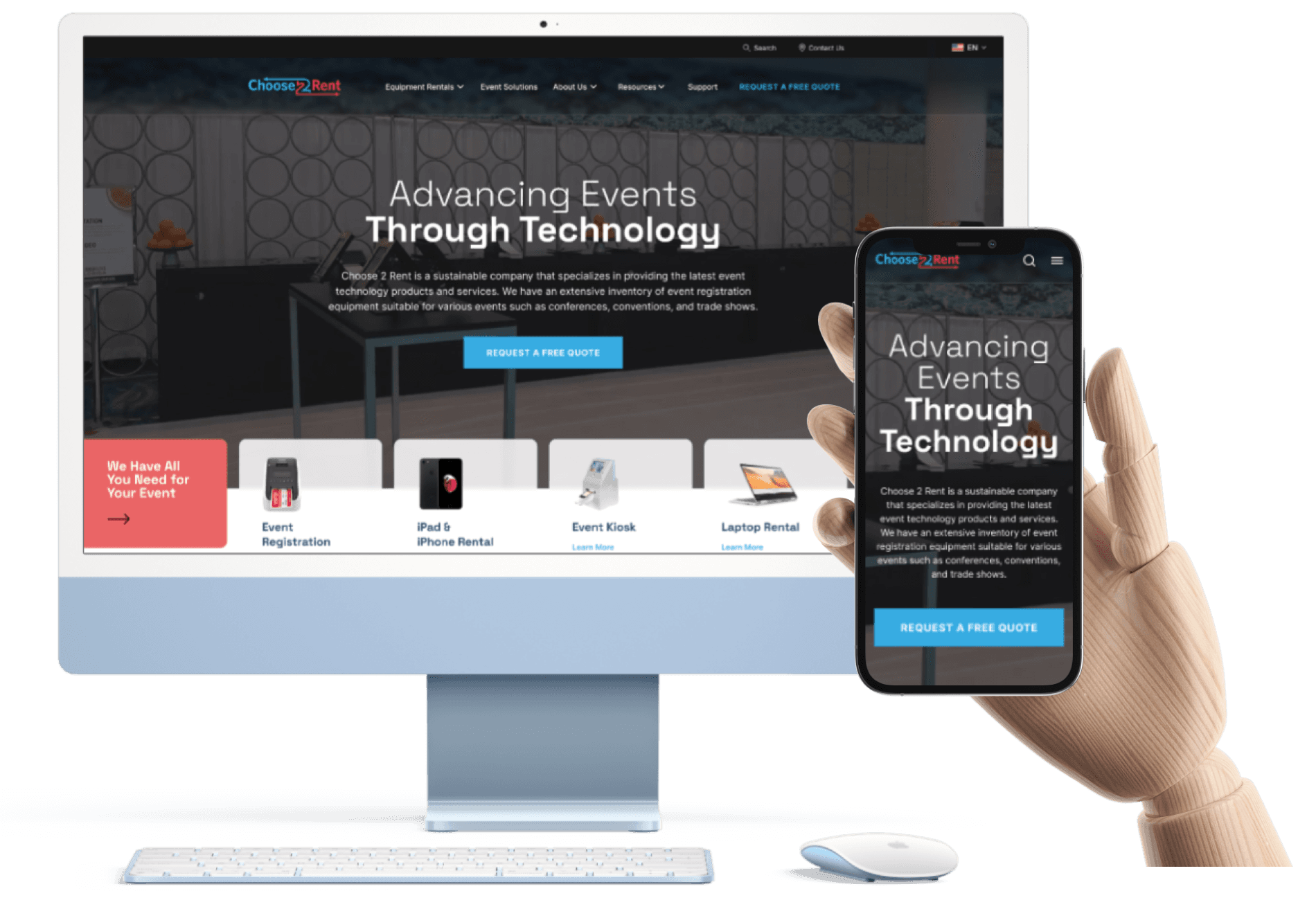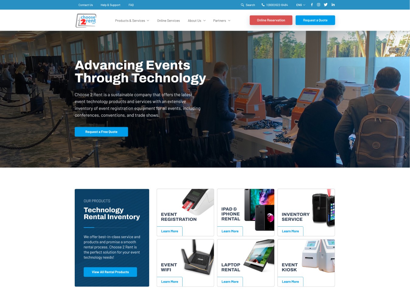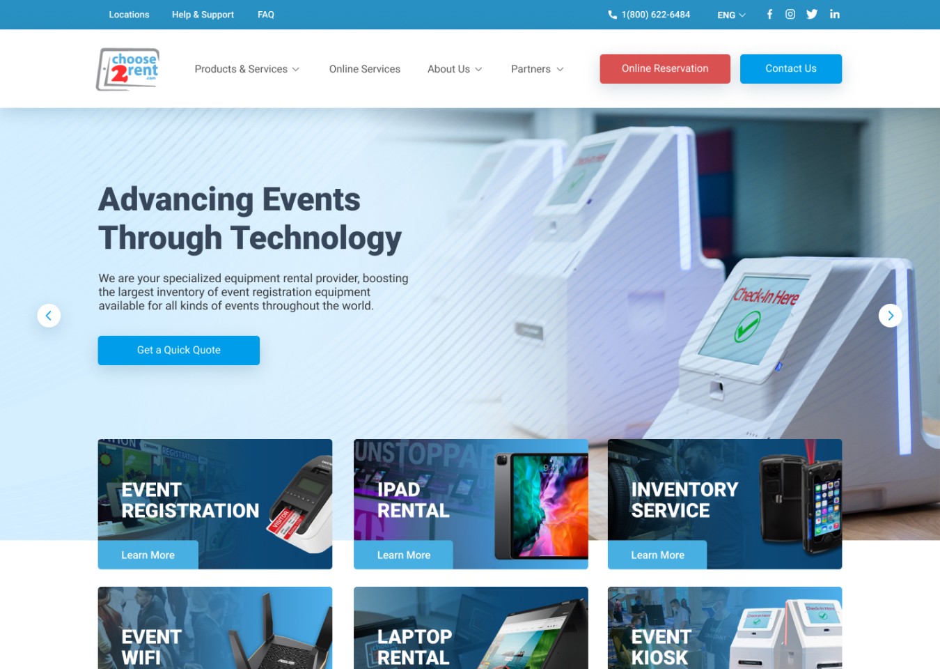 Choose2Rent es una empresa que se especializa en ofrecer soluciones tecnológicas para eventos, con un amplio catálogo de productos y servicios en alquiler para agilizar el proceso de registro y check-in de los asistentes, para cualquier tipo de evento ya sea una conferencia, convención o feria.