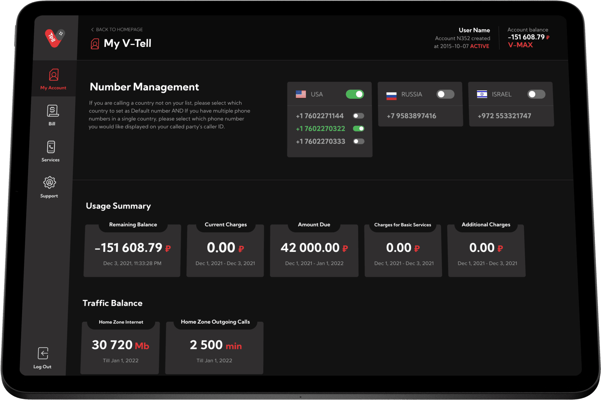 V-Tell es una operadora de telefonía móvil de origen ruso que ofrece sus servicios globalmente. Su distintivo es su tarjeta SIM única que permite utilizar una gran cantidad de números de diferentes países, para así siempre disponer de un número telefónico local en cualquier parte del mundo.